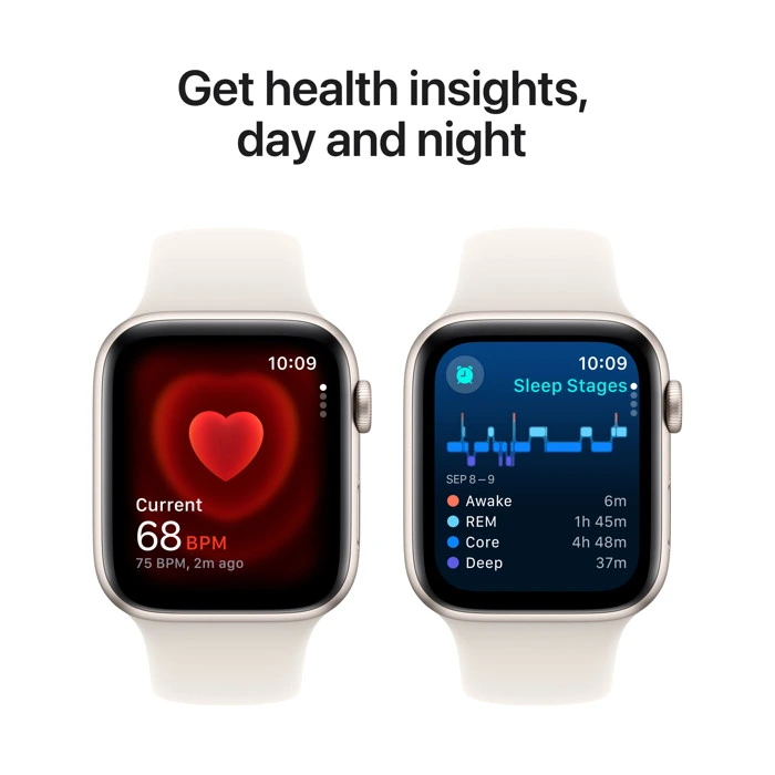 Check your heart rate at any time with the Heart Rate app. And get notifications for high or low heart rate or an irregular rhythm.
