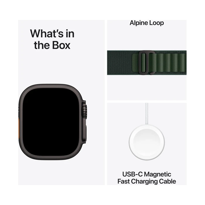 Apple Watch Ultra 2 / GPS + Cellular / 49mm / Black Titanium Case with Dark Green Alpine Loop